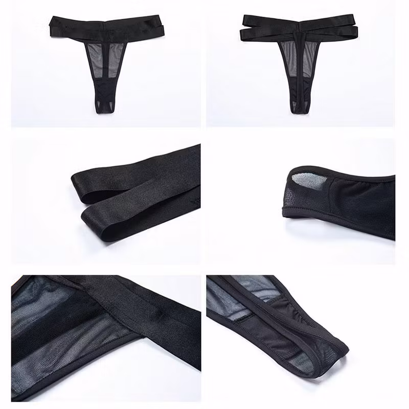 Hot Woman Clothes propose des tongs sexy en noir avec deux sangles à la taille pour celles qui veulent des sous-vêtements sexy avec style et élégance. Commandez la culotte maintenant !