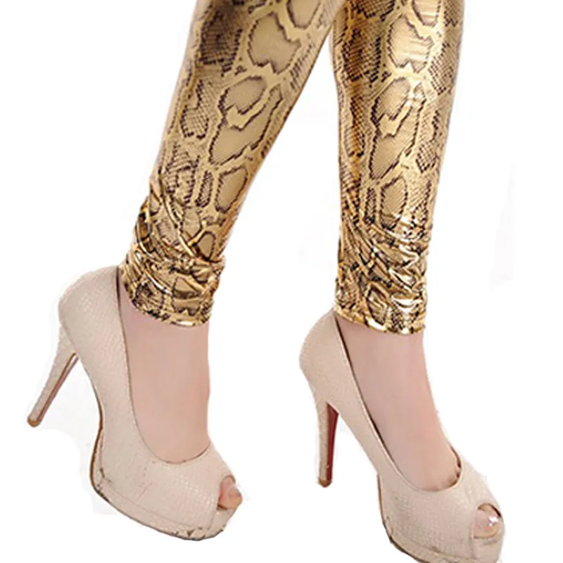 Leggings dorés sexy à motif serpent | HotWomanClothes